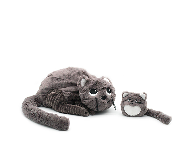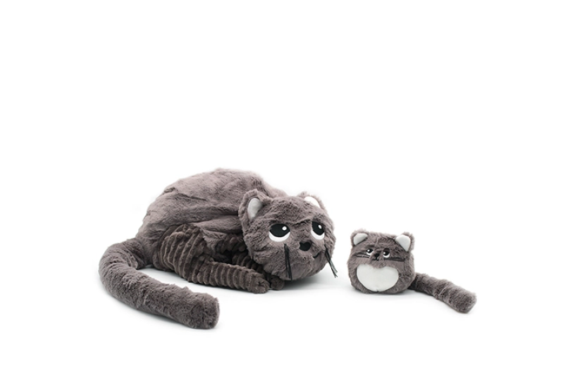 El peluche gato Ptipotos gris de 32 cm se vende con su bebé escondido en su barriga.
