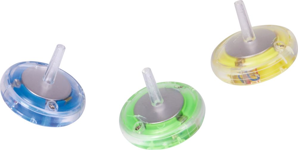Estas peonzas son la caña: ¡sólo hay que hacerlas rodar y se iluminarán!
