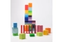 Contiene: 58 piezas planas de diferentes colores, 16 bloques de diferentes tamaños y colores.