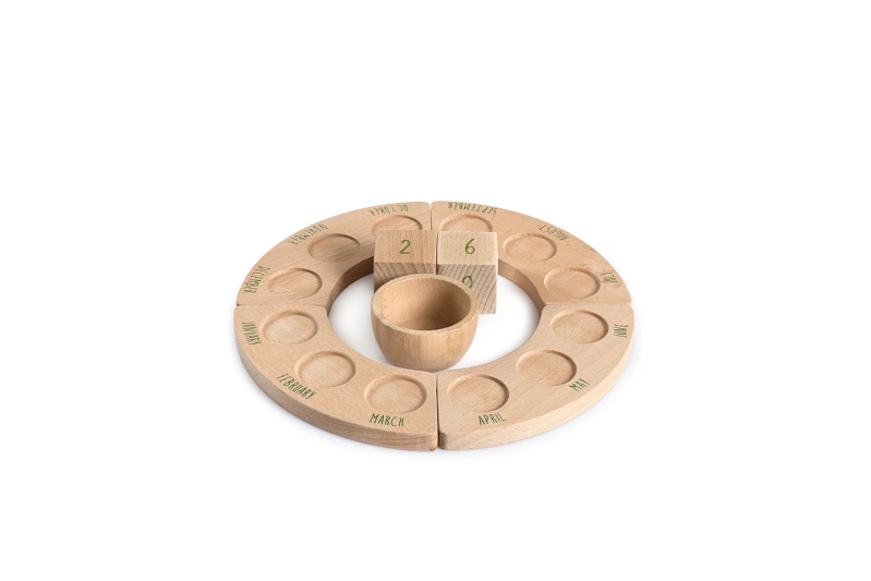 Calendario perpetuo anual manipulable y activo que permite al niño tocar el año y comprender el paso del tiempo a través de la experiencia.