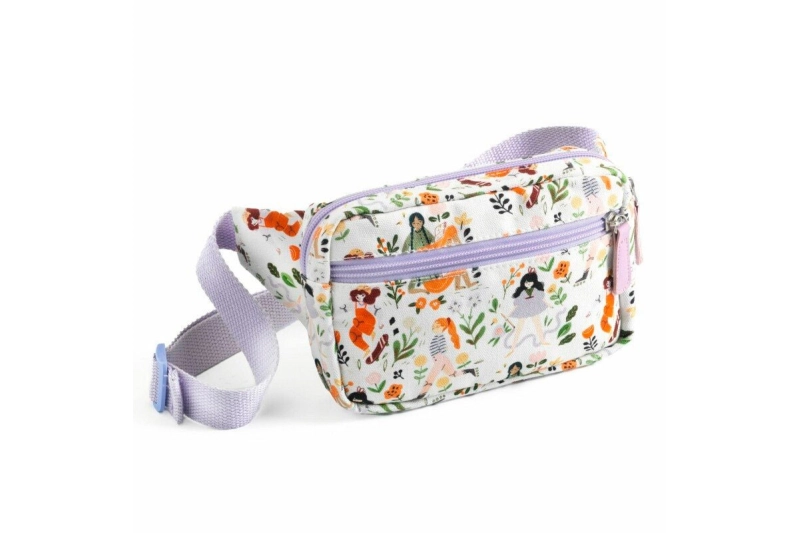 Un bolso de tela repelente al agua, con ilustraciones de chicas.