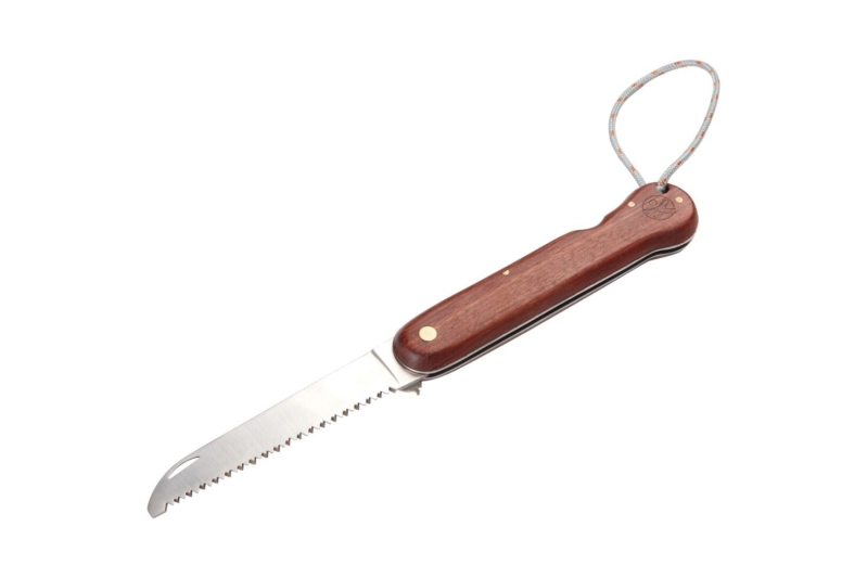 Sierra de bolsillo compacta y ligera, ideal para trabajos de corte de madera verde al aire libre. Recomendada para niñas y niños a partir de 6 años, siempre bajo la supervisión de una persona adulta.