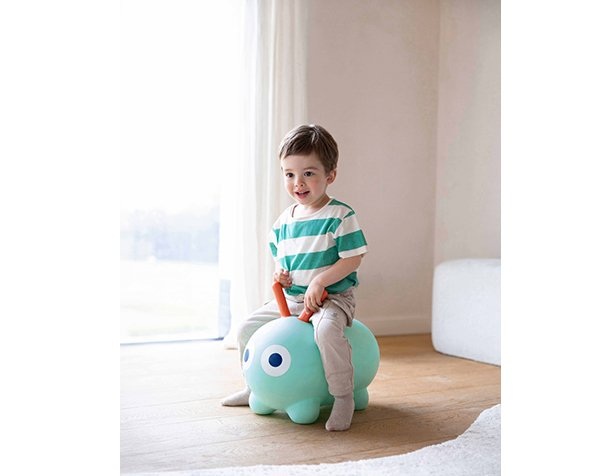 Su cuerpo es ancho, por lo que niños y niñas podrán subirse y mantener fácilmente el equilibrio. Además, sus cuernos hacen de asas para que los más pequeños puedan agarrarse fácilmente y guiarse en la dirección que quieran.