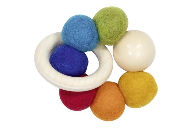 Precioso sonajero de madera y fieltro, muy práctico y agradable al tacto. Perfecto para estimular los sentidos!