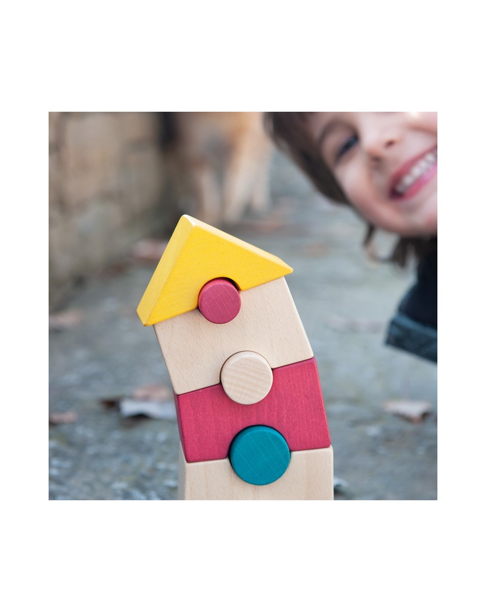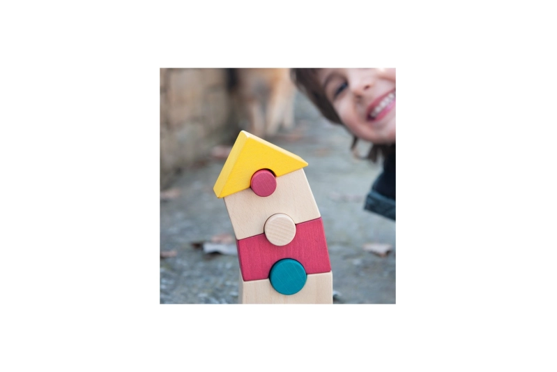 Construye una divertida torre de colores. Puedes hacer crecer la torre completamente recta o encorvada sin que se caiga! dependiendo de como coloques las diferentes piezas de colores.