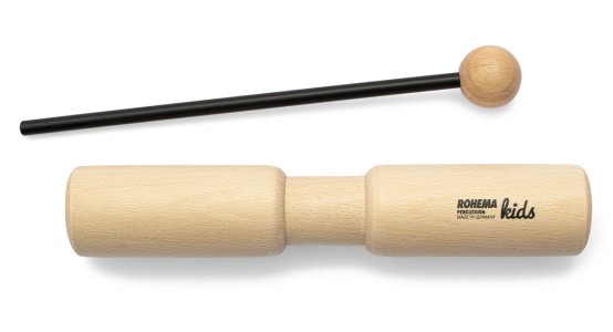 Este tambor de tubo es un instrumento de madera resonante que se puede utilizar para producir dos tonos de diferentes tonos. En esta versión sin mango, el medio del instrumento es más fin que los dos tubos de los lados. Esto significa que los niños tienen que aprender primero como tienen que tener el instrumento para poder producir el mejor sonido posible. Si tocan demasiado el espacio del cuerpo resonante cuando lo sujetan en el centro, no creará un sonido porque no se puede desplegar libremente al espacio vacío. El sonido se produce golpeando los tubos con un mallet. Esta manera consciente de producir sonido requiere un poco de paciencia por parte del jugador, pero es beneficiosa para la concentración y las habilidades motoras de los niños.