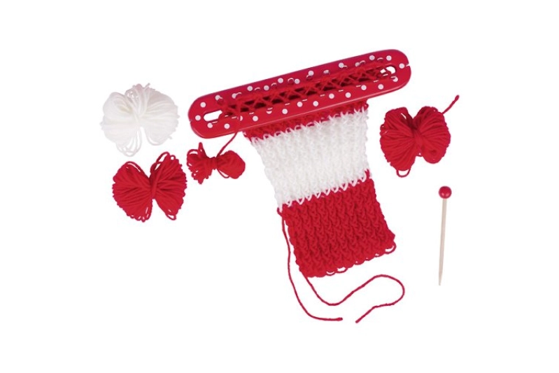 El tambor de hacer punto de Goki es un juguete ideal para la iniciación en las manualidades y el tricotado desde los 4 años. Fabricado en madera y metal, el set incluye un bastidor, una aguja de madera y dos ovillos de lana de colores (rojo y blanco), todo presentado en una caja con tapa plegable. Las instrucciones ilustradas muestran cómo crear fácilmente pequeños y atractivos detalles para regalar, favoreciendo la creatividad, la motricidad fina y la coordinación de niñas y niños.