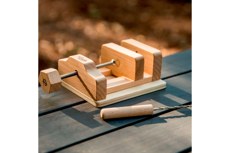 La mordaza es un todoterreno creativo entre las herramientas que puedes utilizar de muchas maneras: para sujetar ramas o piezas de madera (con un máximo de 7 cm de Ø), para agujerear castañas o para romper nueces. Con taladro, pinza metálica e instrucciones.