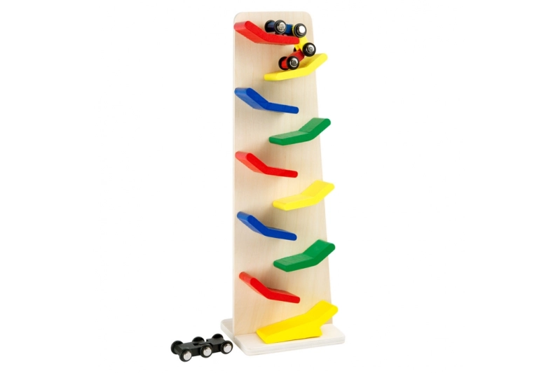 Es un juego muy interesante ya que ayuda al futuro aprendizaje de la lectura al hacer y ejercitar exactamente el mismo movimiento ocular, al ver bajar los coches por la cascada en zig zag, que realizamos con la lectura.