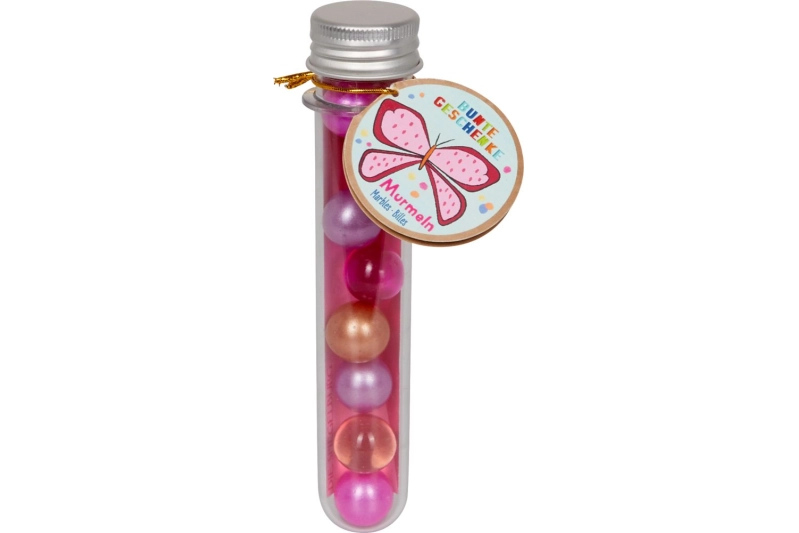 La colección “Butterfly” incluye 9 balas de vidrio únicos, cada una de ellas una pequeña obra de arte en tonos rosados brillantes.